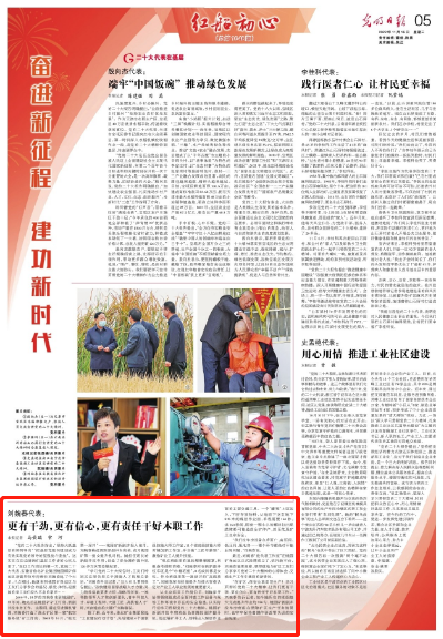“学习党的二十大报告时,工友们特别关注报告里关于技术人才的相关表述。”刘婉春告诉记者,“当大伙儿看到报告提出,‘加速建设国家战略人才力量,努力培养造就更多巨匠、战略科学家、一流科技领军人才和立异团队、青年科技人才、卓越工程师、大国工匠、高技术人才’时,兴奋地直拍大腿!”刘婉春说。