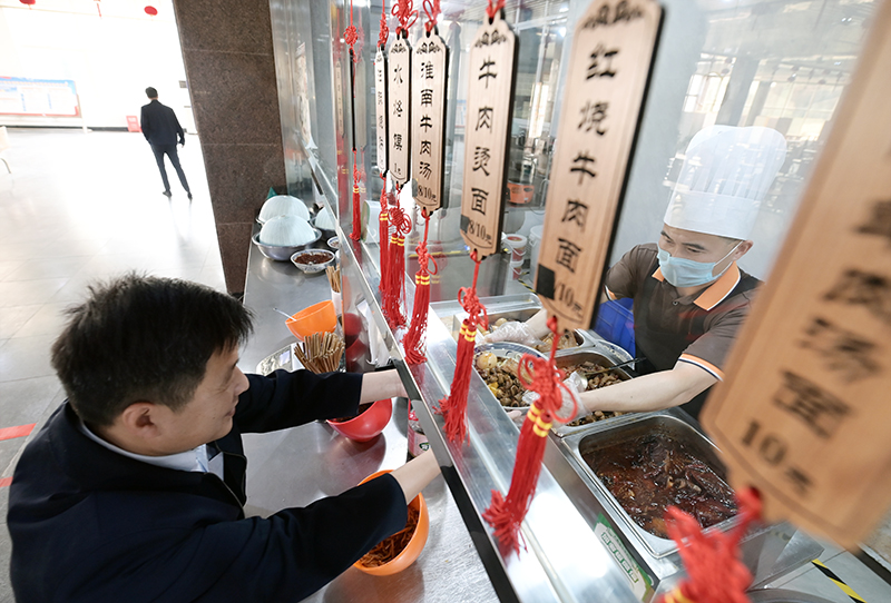 孙疃矿引进专业化餐饮公司,食堂治理规范、物美价廉,提高了职工的就餐体验。(陈更 摄)