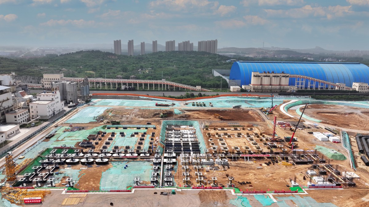 5月13日,航拍聚能发电公司2×660MW超超临界机组项目主机厂房桩基施工现场