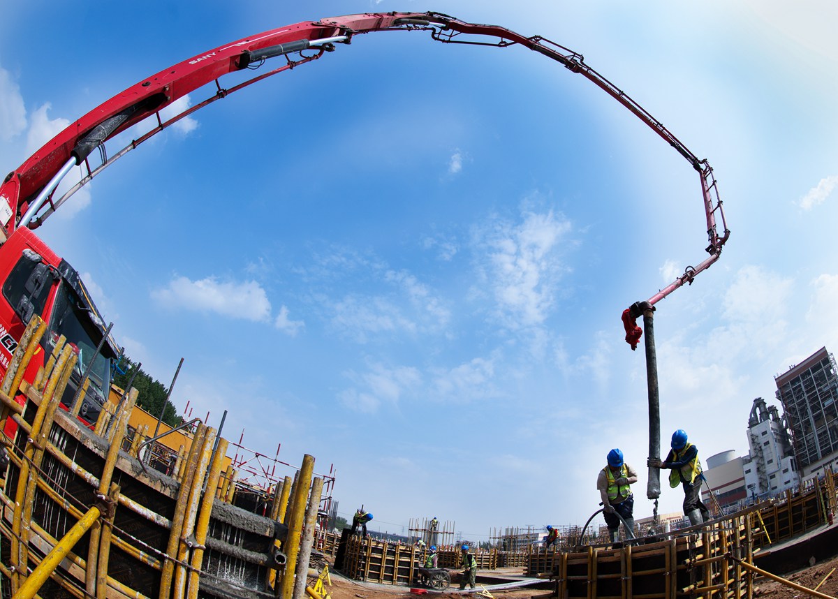 泵趁魅正在浇注聚能发电公司机组项目锅炉承台短柱