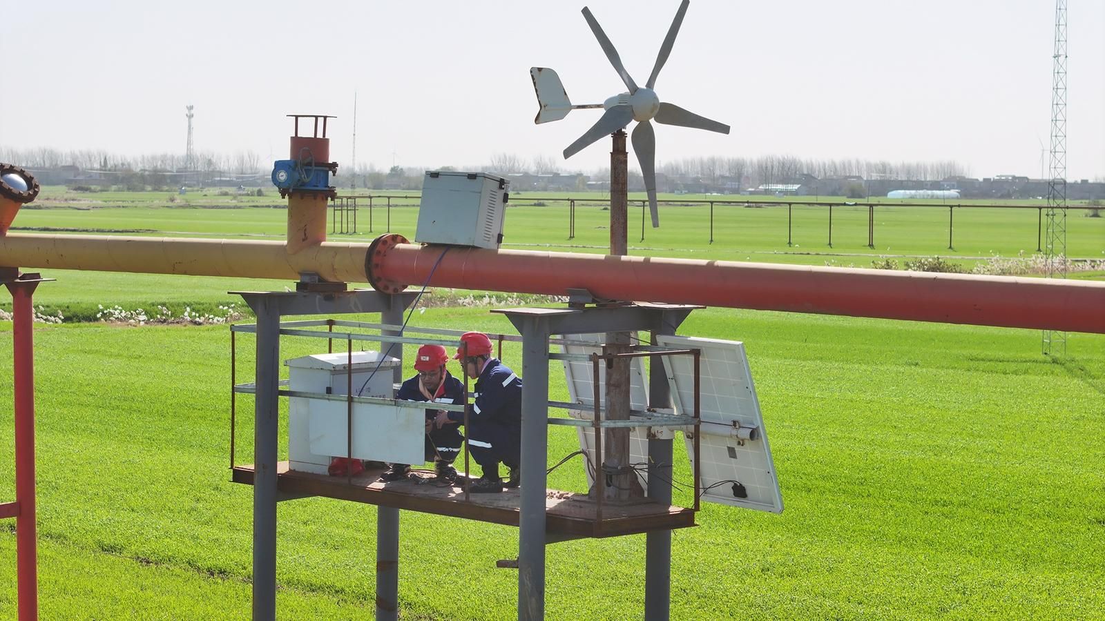 ÉñԴú»¯¹¤¼¼ÊõÈËÔ±ÔÚ¶ÔµØÃæÍß˹³é²É¾®½øÐмÆÁ¿µ÷У