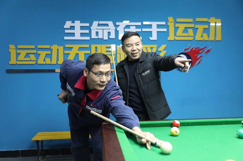 下班后,袁店二矿职工在运动中心休闲娱乐。(王连生 摄)